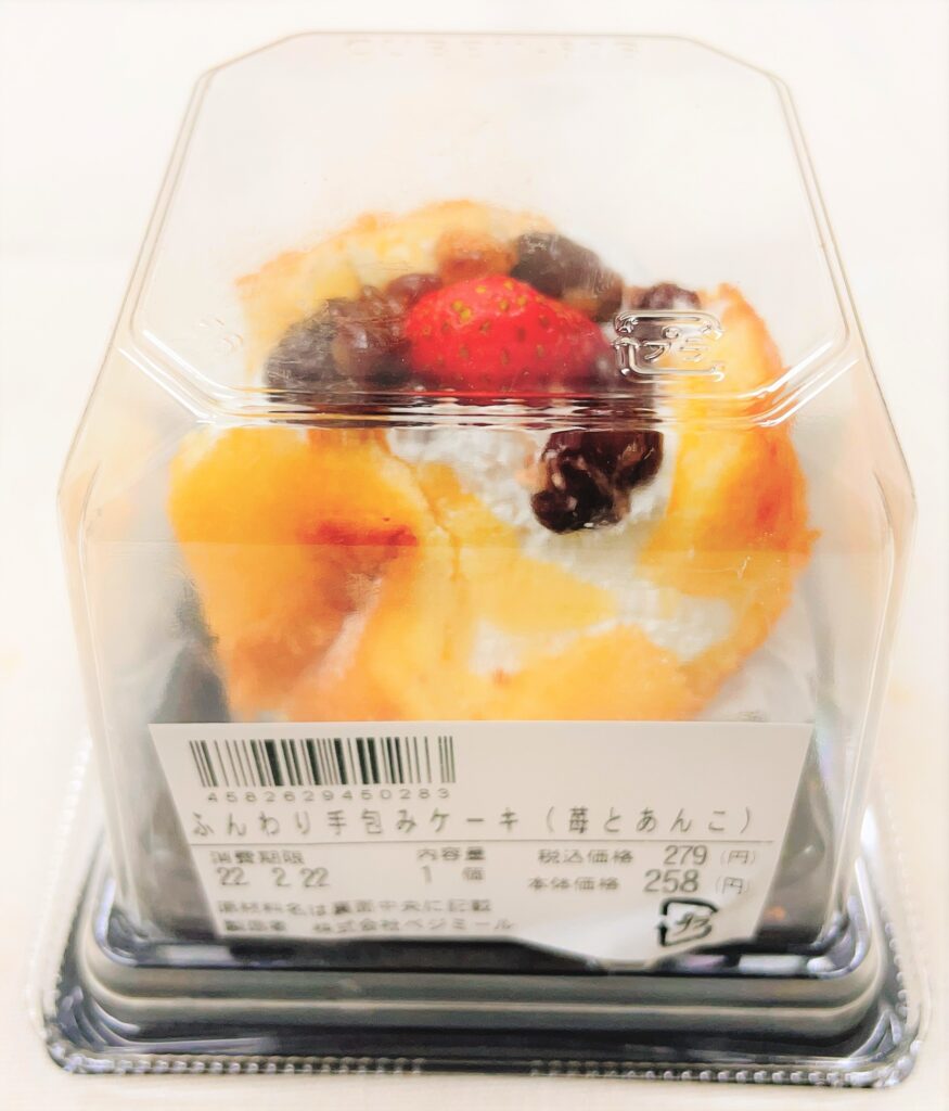 やわらかいスポンジにホイップクリームと苺がトッピングしてあるスイーツです。